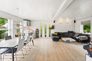 "I den store og rummelige stue, med ild i brændeovnen om vinteren, og hyggeligt selskab af venner eller familie. Om sommeren er den klart på vores terrasser hvor vi griller, bager pizza eller slapper af i vores lounge havemøbler."