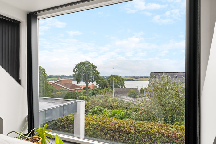 Udemiljøet er anlagt med samme omhu som resten af boligen. Den vestvendte terrasse skaber en eksklusiv ramme om udelivet, mens den lette, plane have sikrer minimal vedligeholdelse. Som en naturlig afslutning på det moderne udtryk er ejendommen udstyret med solceller, der bidrager til en energieffektiv og fremtidssikret hverdag.