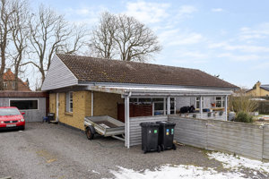 Fra alrum er der udgang til en 18m2 udestue, som har adgang til den store garage med værksted.