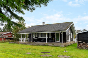 Rundt om huset breder der sig en stor, lækker træterrasse, delvist overdækket, så du kan nyde udelivet i al slags vejr. Der er direkte udgang fra stuen til terrassen.