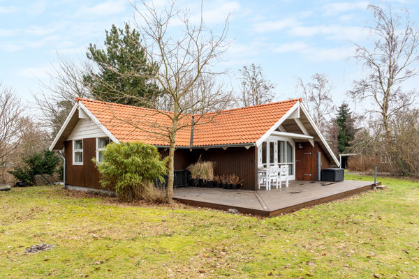 Den 939 m² store grund er smukt beplantet med træer og buske, der skaber en skøn, privat og stemningsfuld sommerhusatmosfære.
