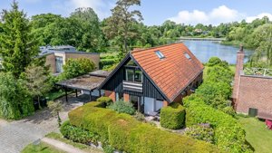 Parkvej 32B er en af de få ejendomme, der ligger helt ud til søen, og udsigten er noget særligt. Fra huset har du et ugenert panoramaview over vandet og den smukke hvide bro, der krydser søen. Det er en udsigt, der kan nydes året rundt med solnedgange over søen og naturens skiftende farver, der spejler sig i vandet.