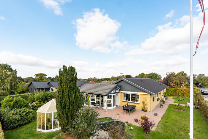 Udenfor venter en stor, solrig have med masser af plads til leg, hygge og afslapning. Derudover får du etisoleret værksted med støbt gulv – perfekt til hobbyprojekter, opbevaring eller gør-det-selv-entusiasten.