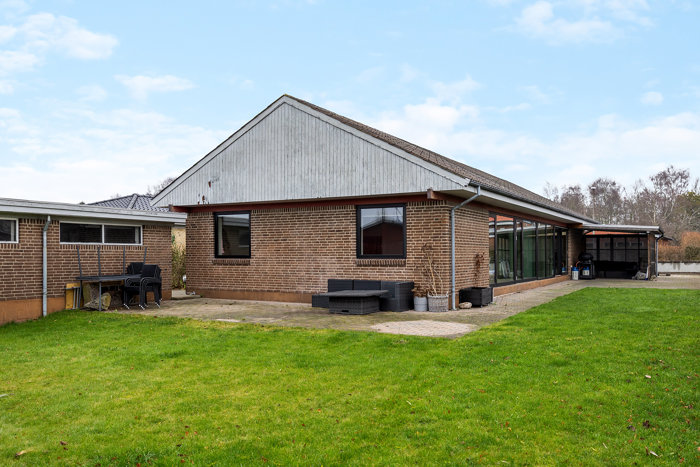 Haven byder på masser af plads med en skøn græsplæne og fine bede. Her er der plads til leg og udeliv, perfekt til både store og små familiemedlemmer.