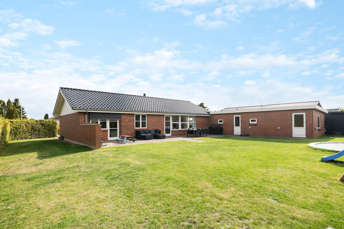 Udearealerne er overskuelige med en fin have der grænser direkte op til marker. Her er der er mulighed for både, afslapning, leg og sammenkomster. Med til boligen hører et rigtig fint værksted med plads til hobbyprojekter eller opbevaring af haveredskaber mm., et drivhus og en overdækket terrasse.