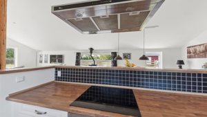Takket være den omfattende renovering i 2019 fremstår alt nu lyst, lækkert og funktionelt. Hverdagens såvel som feriens rammer er derfor virkelig fine, og her er der især lagt vægt på at skabe store, sociale rum at samles i. Det elegante køkken ligger derfor i åben forbindelse til stuen, og i sidstnævnte er der både pilleovn og direkte udgang til terrassen.
