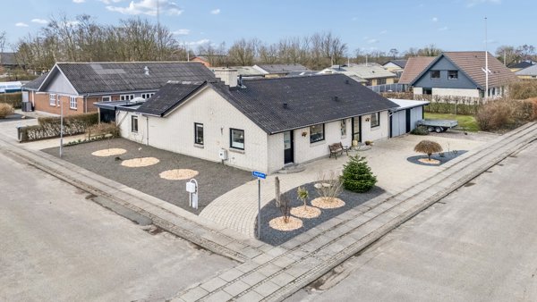 Haven er et kapitel for sig. Den store terrasse - hvoraf en del er overdækket - danner den dejligste ramme for at nyde udelivet i fulde drag. Der er lavet pergola, som er perfekt til grillhygge og lune sommeraftener. Derudover er der fin forhave med belægningssten og granitskræver i bede, så det er nemt at holde.