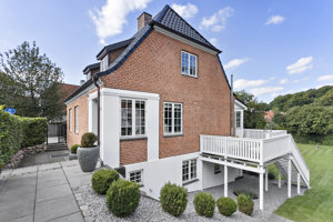 Fra vejen er villaen beskeden, selvom det nye sorte tegltag fra 2022 med flotte kobberrender og det perfekte murværk giver et hint om kvaliteten i dette hus. Fra havesiden ses villaen derimod i sin fulde størrelse, hvor den store skrånende grund, på 1.190 kvm, gør underetagen til en fuld anvendelig etage med direkte udgang til haven, således villaens bolig udgøres af hele 3 etager med en stor dejlig terrassse i stueplan. Det er ikke bare taget som er i orden - alt er gennemrenoveret med både omfangsdræn, lækkert køkken med smukke bordplader og flotte store badeværelser m.m.