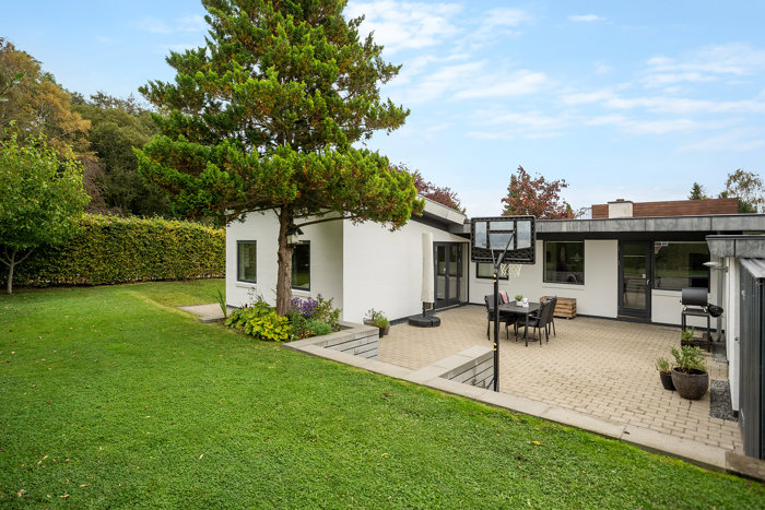 Fra udestuen er der adgang til en sydvendt flisebelagt have med en nyere træterrasse, som skaber et ideelt uderum til både afslapning og grillmiddage. De overskuelige udearealer kræver minimal vedligeholdelse og indbyder samtidig til leg og aktivitet. Haven er veldisponeret med god plads og privatliv, så I kan nyde de lune måneder under åben himmel. I forbindelse med garagen er der indrettet et anneks som kan bruges til kontor eller gæster.