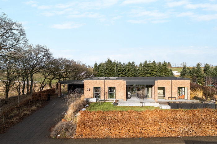 Inde venter et flot opdateret hjem i nutidig stil med gennemførte materialer, der skaber en tidløs silhuet gennem alle rum. Særligt i husets hjerte folder det sig ud: køkkenets stilrene elementer med kogeø smelter sammen med alrum og stue, og her er plads til både hverdagsliv, livets fester og de små øjeblikke.