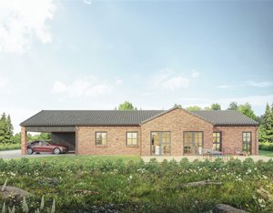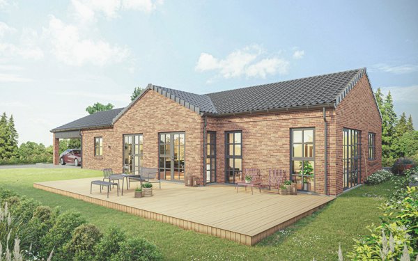 Den integrerede dobbelt carport med redskabsrum fuldender helheden – praktisk, elegant og gennemtænkt fra første streg.