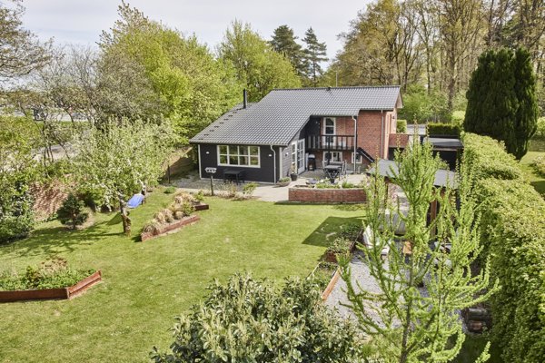 Den 1.000 m² store grund er anlagt med græs, gamle træer og højbede og indbyder til både leg, samvær og afslapning. Med drivhus, pergola og skur er rammerne sat for et aktivt udeliv tæt på både by og natur.