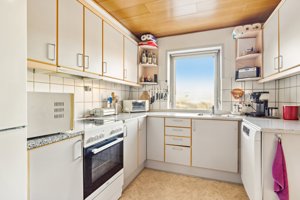 I stueetagen mødes du af et charmerende og praktisk køkken med god skabs- og bordplads, som fungerer godt i hverdagen. Herfra er der forbindelse til den rummelige stue, der fremstår lys og indbydende med plads til både spiseafdeling og opholdsområde. Stuen egner sig både til afslapning og til at samle familie og gæster i rolige rammer.