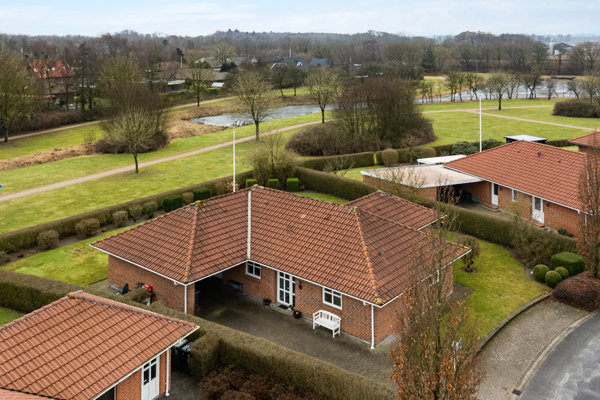 Velholdt have med store græsarealer og omkransende hække. Rød murstensfacade og gode terrassedøre, så udelivet nemt kan nydes direkte fra huset.