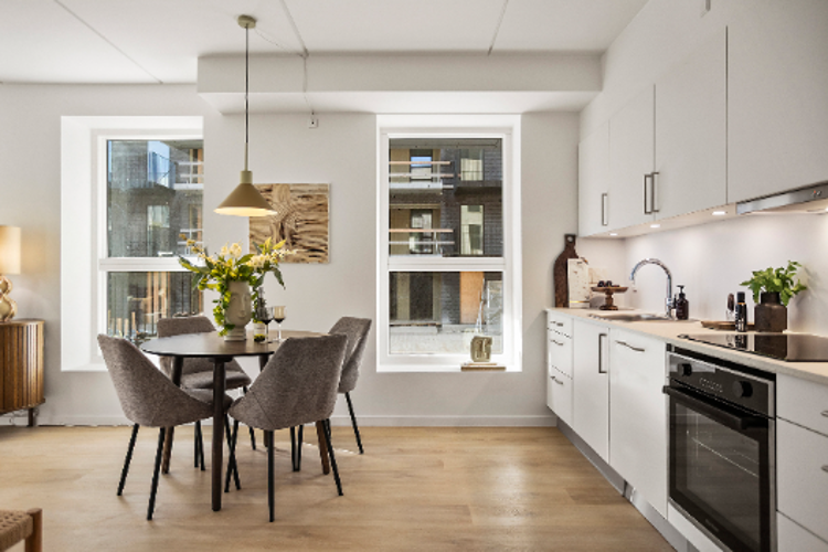 Med 98 lejligheder i varierende størrelser fra 40 til 122 m² finder du boliger, der passer til alle livssituationer – fra studerende til børnefamilier. Alle lejligheder er designet med fokus på funktionalitet og æstetik. De byder på moderne komfort og kvalitetsinventar. Mange af boligerne har egen privat terrasse, som skaber en naturlig forlængelse af hjemmet.