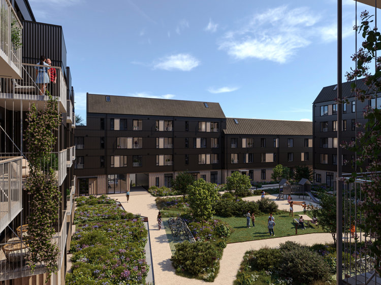 Trægården består af 119 ejerlejligheder tegnet af Vandkunsten. Det er deres bud på en moderne boligkarré, hvor livsnydelse, godt indeklima og gennemførte materialer er styrende greb.